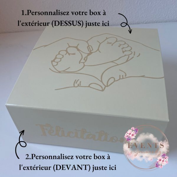 Vous avez déjà le cadeau parfait à offrir pour une naissance, mariage, anniversaire, … mais vous souhaitez avoir une jolie boîte cadeau personnalisée?